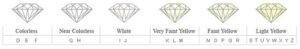 Diamonds come naturally in every color of the rainbow. However most people are concerned with diamonds in the white range. The Gemological Institute of America (GIA) rates the body color in white diamonds from D (colorless) to Z (light yellow). The differences from one grade to the other are very subtle and it takes a trained eye and years of experience to color grade a diamond.